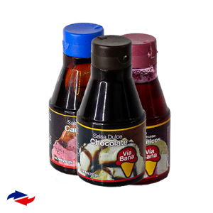 Salsas dulces por 500 gramos, sabores: Caramelo, Chocolate, Dulce de Leche, Frutos Patagónicos, Frutilla.